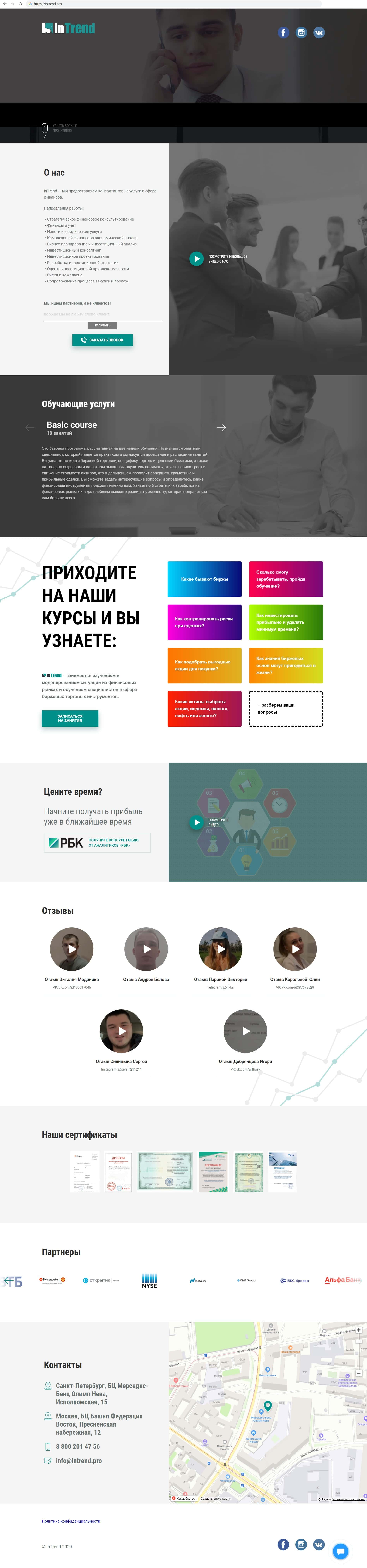 Главный сайт кидал ИнТренд состоит всего их одной страницы. Фирма наполнила свой интернет ресурс фальшивой информацией и лживыми обещаниями что бы привлечь клиентов.