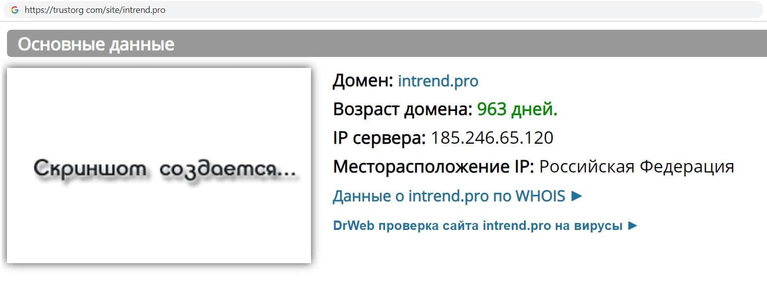 С помощью сайта "Доверие в Сети" мы узнали, что аферисты ИнТренд существуют более 2 лет, но за это время о компании кидал почему то практически нет информации в сети.