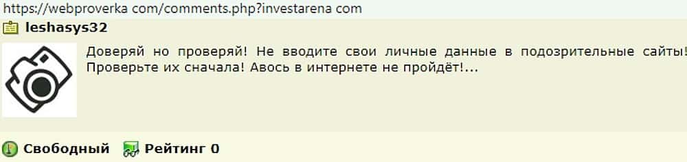 - Пользователи сети не доверяют сомнительному проекту Инвест Арена
