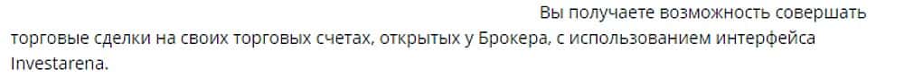 Но даже, если у клиента лжепроекта Инвест Арена имеется свой брокер, шарлатаны с радостью сведут их через свой шлюз, чтобы отщипывать кусок от каждой торговой сделки.