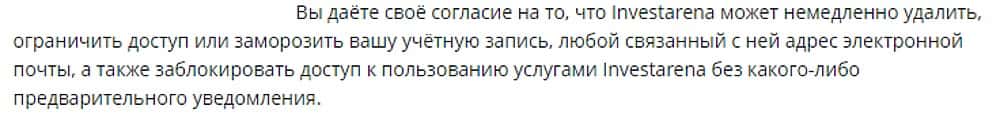 А еще киберлохотронщики investarena com могут в любой момент заблокировать счета своих клиентов. Причем, исходя из положения оферты, объяснять почему, они не станут.