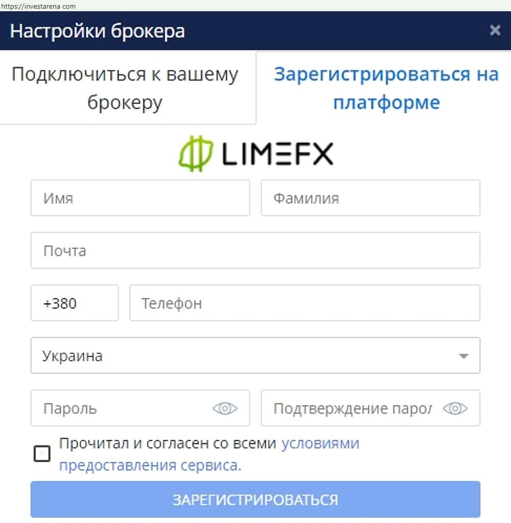 После того, как осуществлен вход в аккаунт на сайте, можно обнаружить, что махинаторы Инвест Арена предлагают вам подключиться к брокеру. Это кухонная шарашка LimeFX.