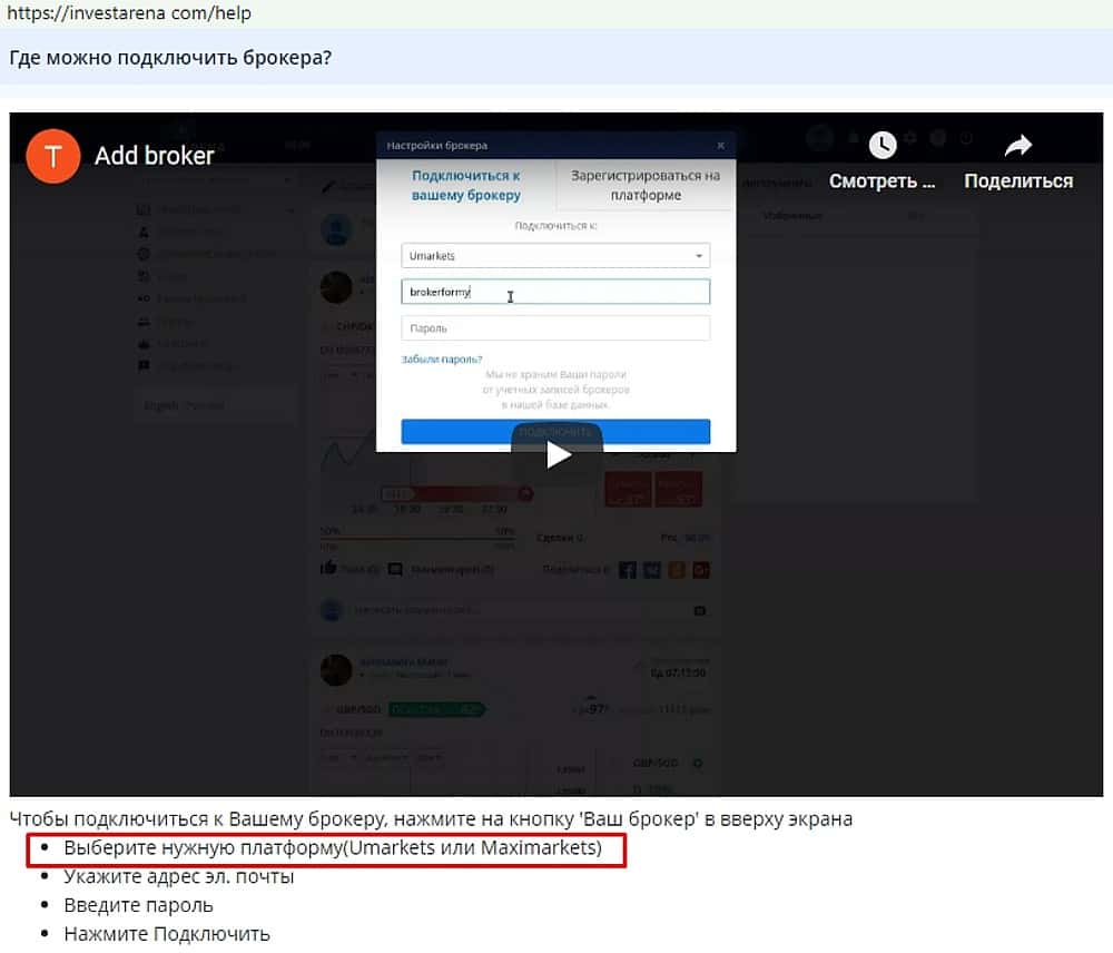 А вот в разделе "Помощь", который на сайте найти прямым способом навряд ли получится, дешевые прохвосты InvestArena указали, что сотрудничают с шулерами Umarkets и MaxiMarkets.