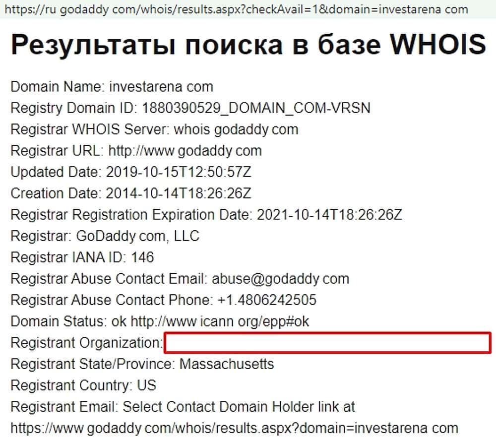 - Кто владеет доменным именем, связанным с лохопрокатом InvestArena?