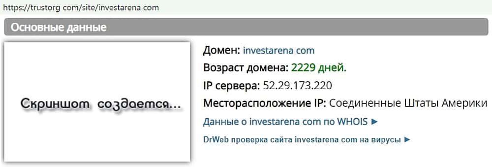 Домену кидал Инвест Арена, якобы более шести лет, однако это не означает, что авантюра существует все это время. Лохотронщики перекупили его совсем недавно, в конце 2019 года.