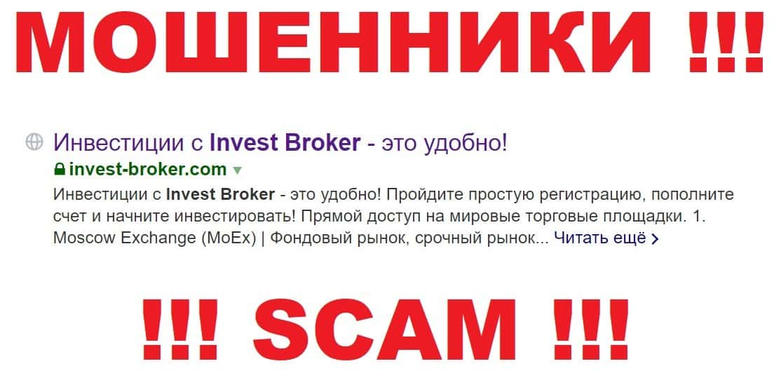 Инвест Брокер - лохотронщики, сливающие людей, если они и Вас развели или хотели обмануть, то в таком случае сообщите свой электронный адрес в форме для обратной связи ниже, и с Вами выйдут на контакт.