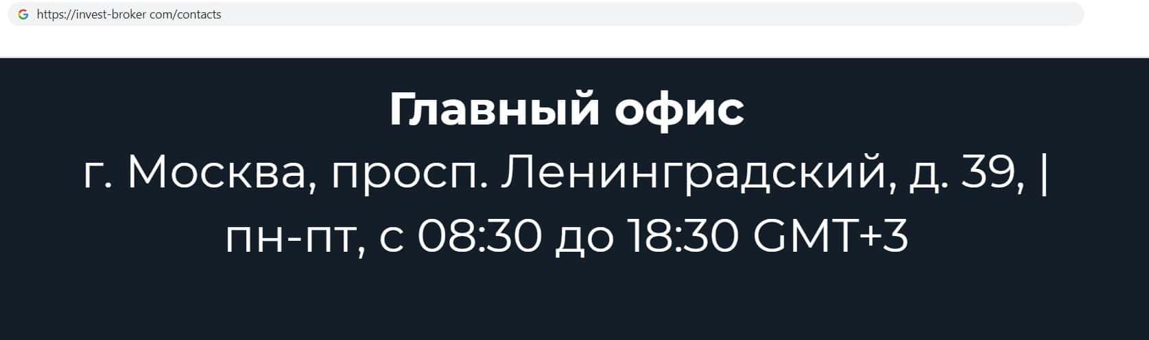 Так же фирма махинаторов Invest Broker - IN BROKER указала адрес своего главного офиса, но не стоит доверять этой информации, так как она фальшивая. Адрес аферистов: