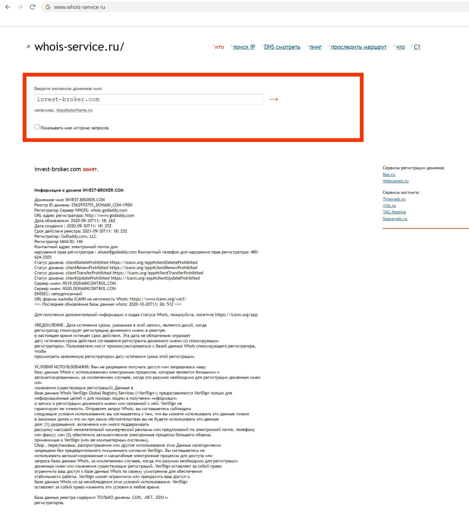 Кому принадлежит домен лжеброкера Invest Broker - IN BROKER?
