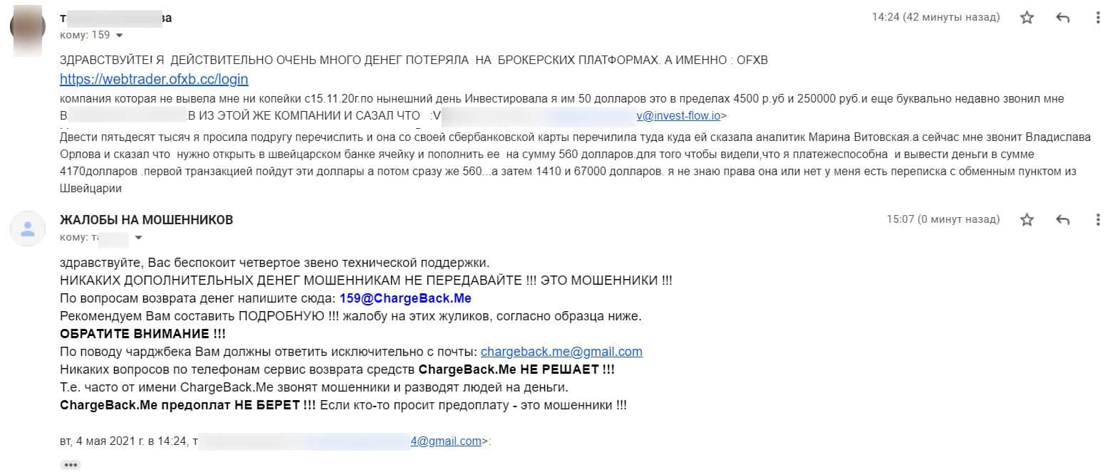 - Аферисты Инвест Флов и ОФХБ кинули пользователя на деньги