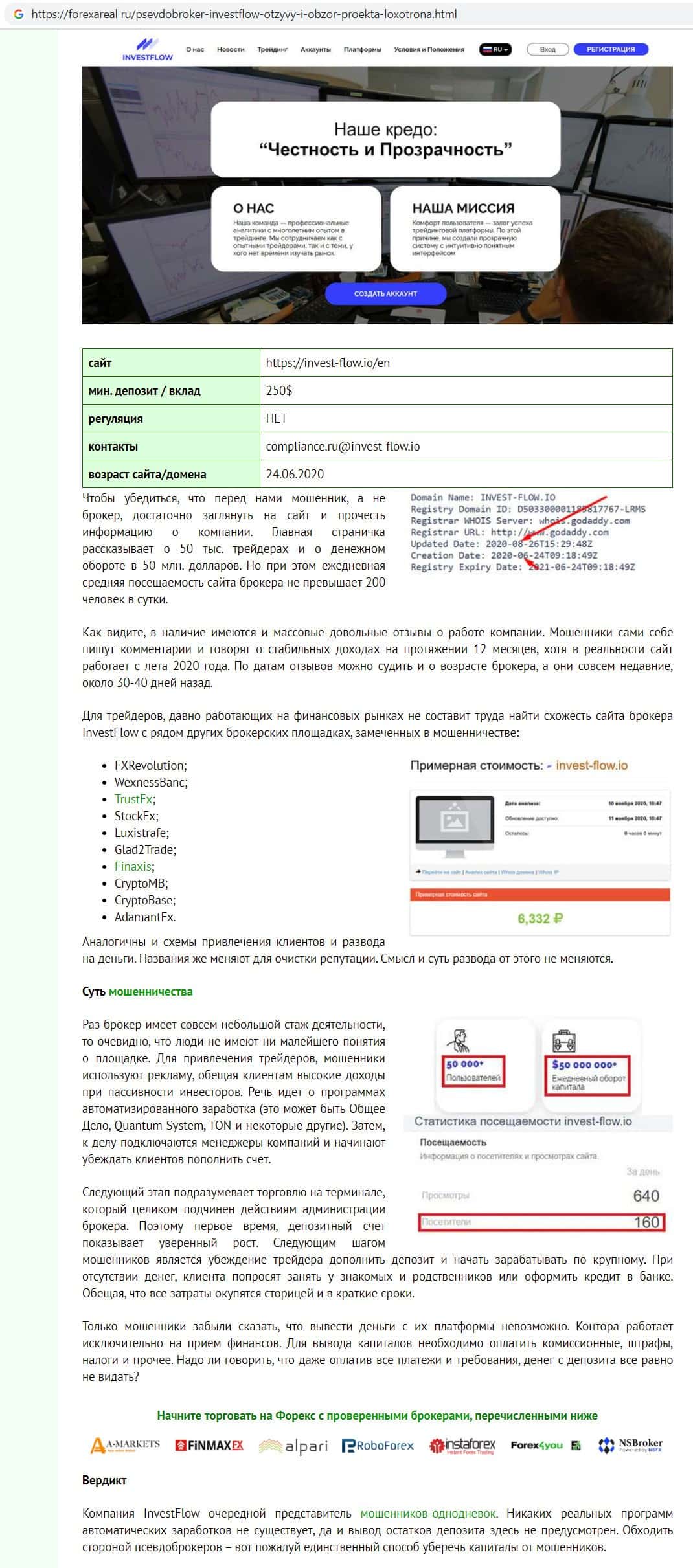 forexareal ru - сайт с отзывами о жуликах Invest-Flow io