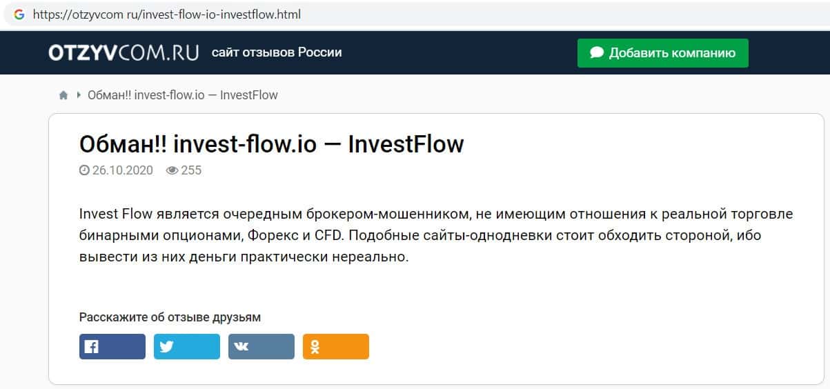 - Мнение интернет ресурсов о фирме мошенников Инвест Флов