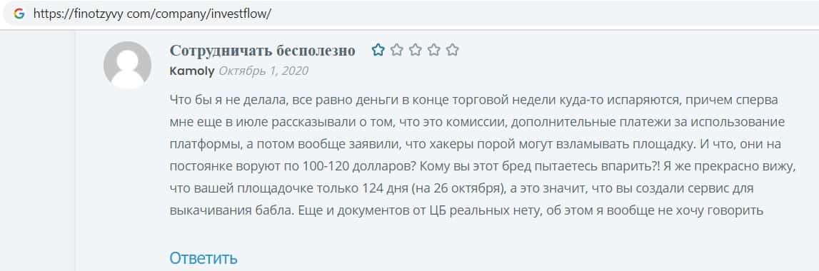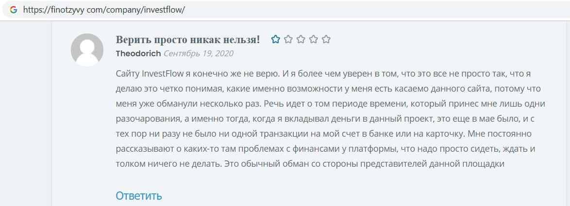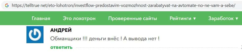- Пользователи не доверяют махинаторам Invest-Flow io