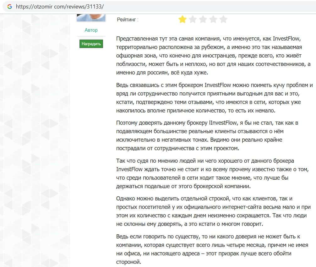 otzomir com - интернет ресурс с отзывами о разводилах Invest-Flow io