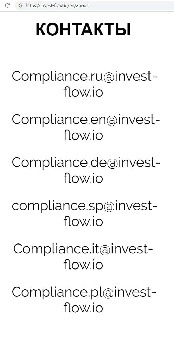 Фирма финансовых разводил Invest-Flow io не предоставила информации о своём руководстве, что является одним из основных признаков мошенничества со стороны фирмы.