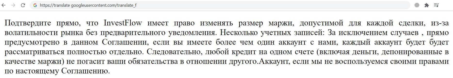 Так же финансовый лохотрон Инвест Флов указал в соглашении пункт, согласно которому фирма имеет право изменять размер маржи по собственному усмотрению.