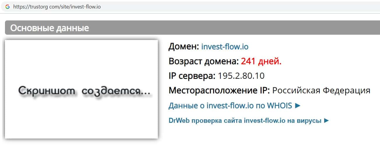 - Информация о возрасте главного сайта жуликов Инвест Флов