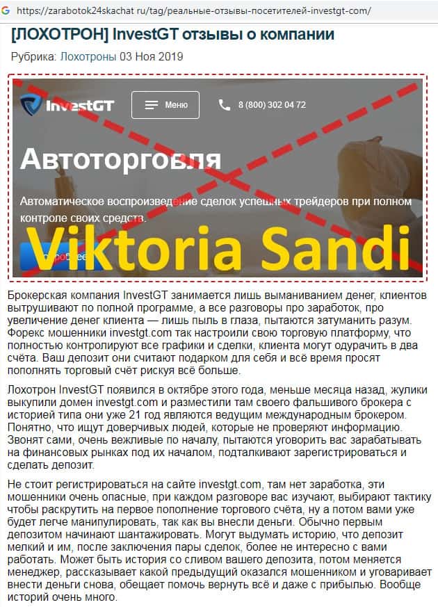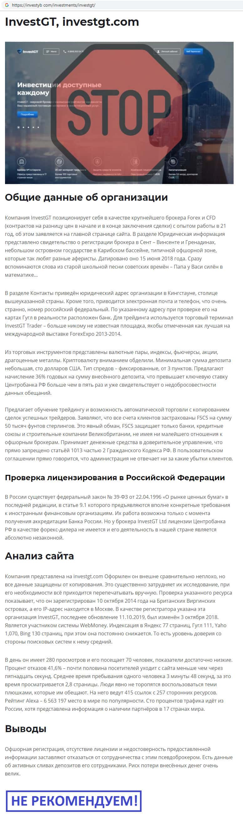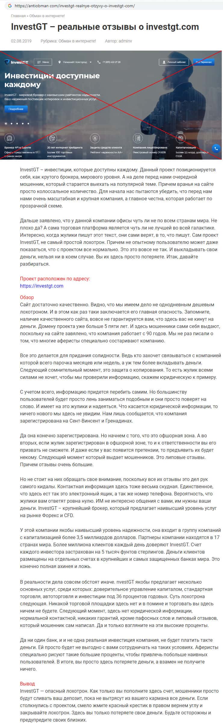 - Статья об аферистах InvestGT замечена на веб-площадке investyb com