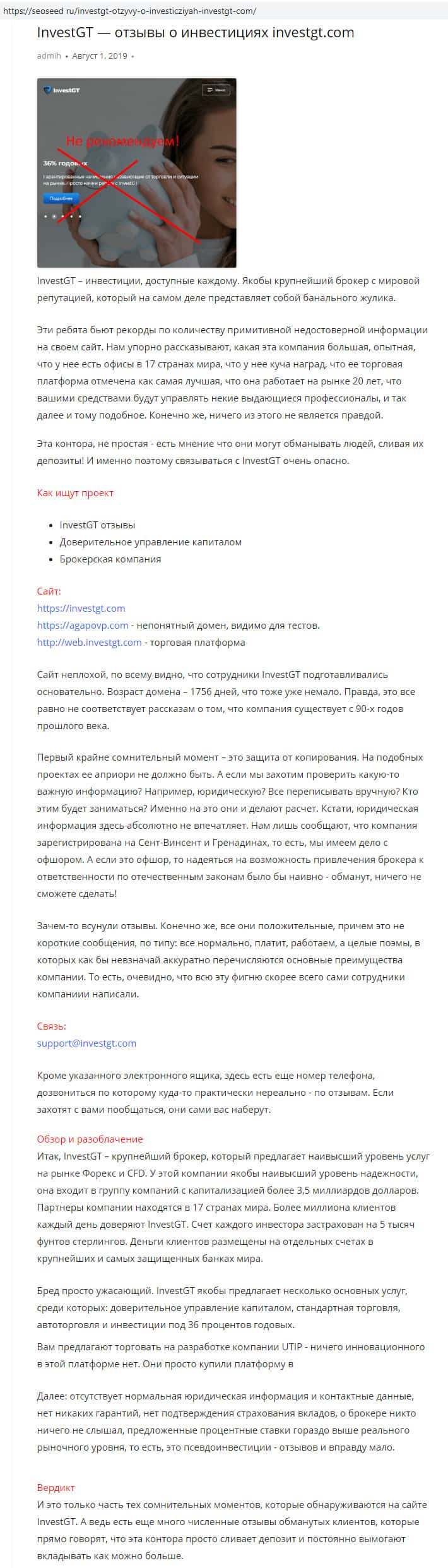 - Очередная статья-отзыв о инвестициях компании InvestGT взяты с информационного сайта seoseed ru