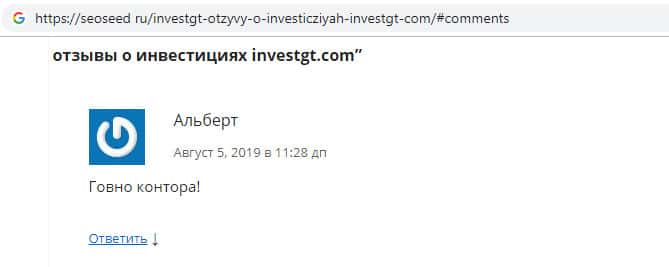 Комментарий некого Альберта о скам-конторе Инвест ГТ отысканный на сайте seoseed ru