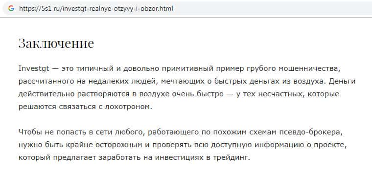 - Комментарий о шуллерах InvestGT был замечен на веб-сайте 5s1 ru