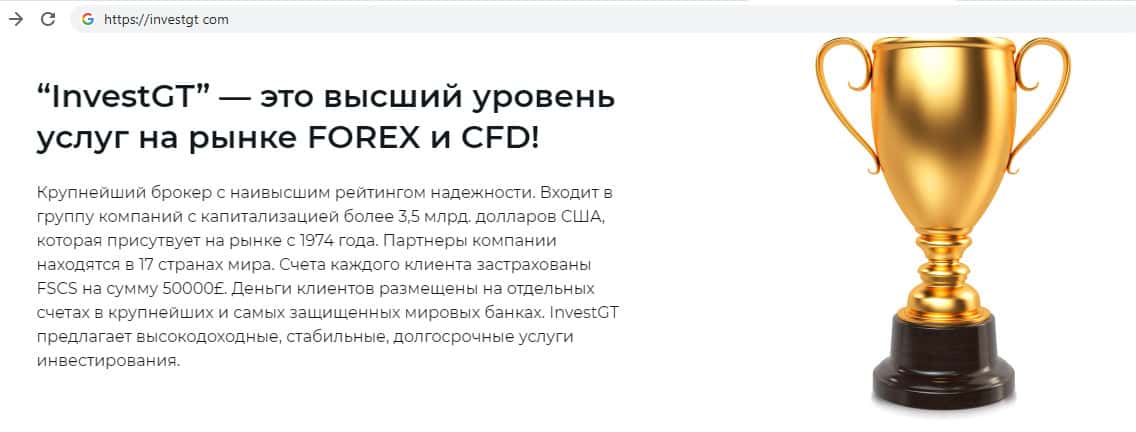 - Мошенники InvestGT нагло врут о высшем уровне предоставляемых ими услуг