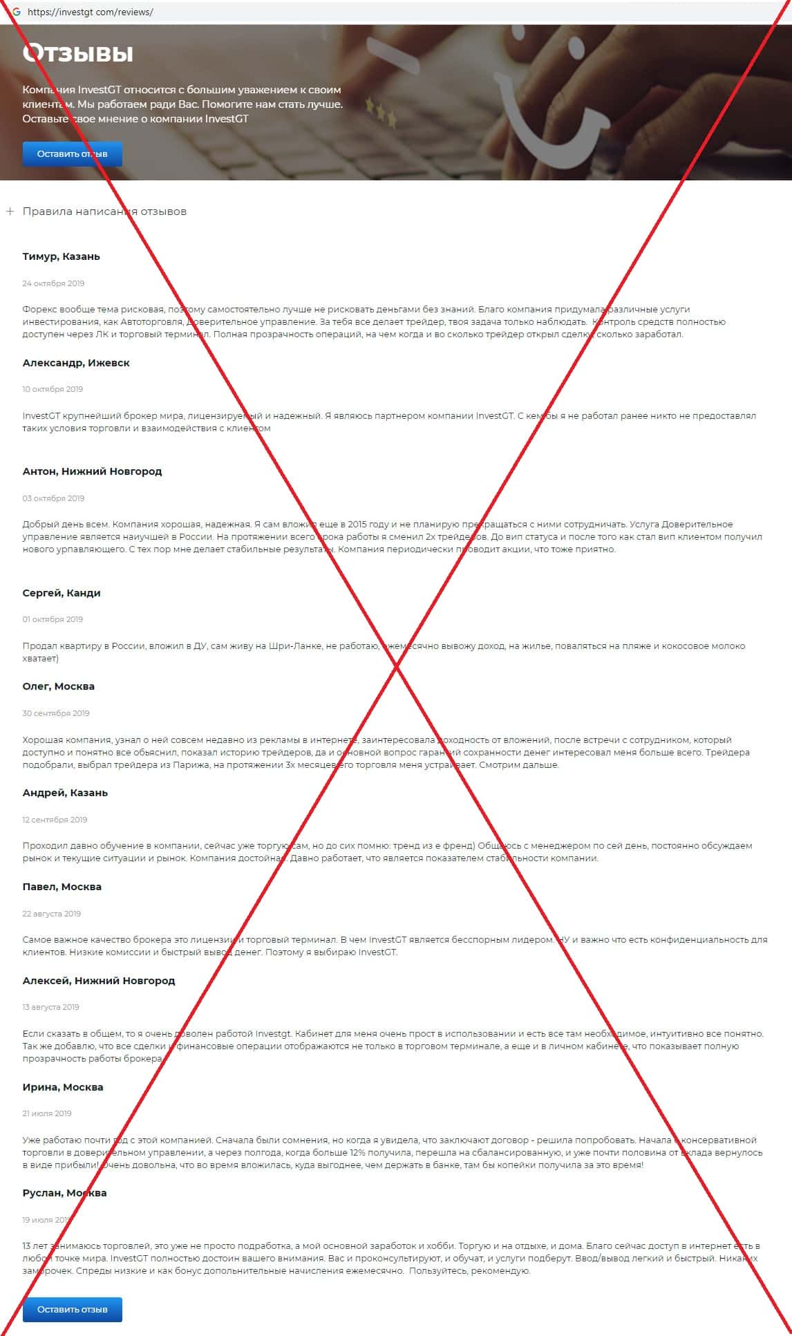 - Мошенники Инвест ГТ разместили придуманные отзывы на своем официальном сайте