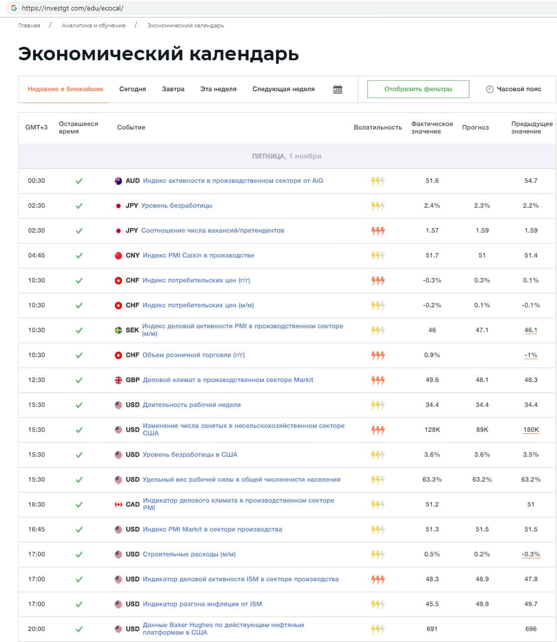 - Экономический календарь на официальном сайте брокерской конторы InvestGT