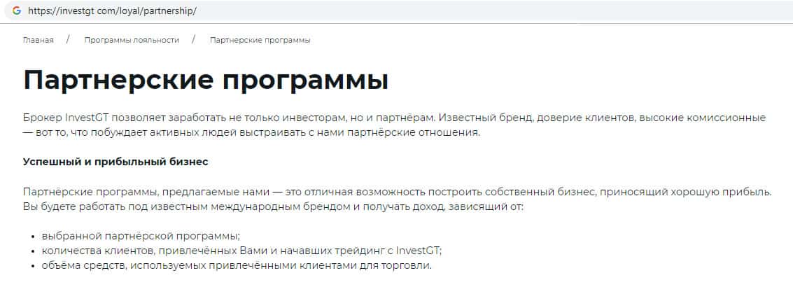 - Доход на сайте жульнической организации Инвест ГТ якобы зависит от выбранной партнерской программы