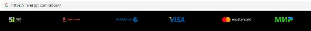 Перевод денежных средств на сайте инвест-лохотрона InvestGT осуществляется с помощью банковских переводов, банковских карт клиента и электронных платежных систем. Ни в коем случае не доверяйте свои денежные средства жуликам Инвест ГТ. О прибыли на данном сайте можете забыть.