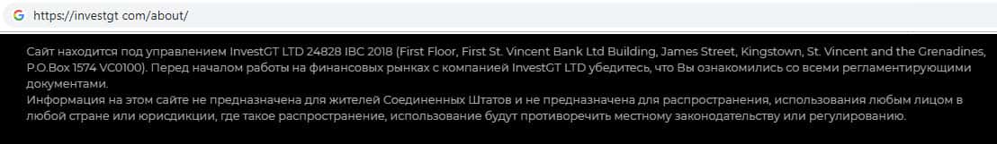 - Политика конфиденциальности на официальном сайте скам-организации InvestGT