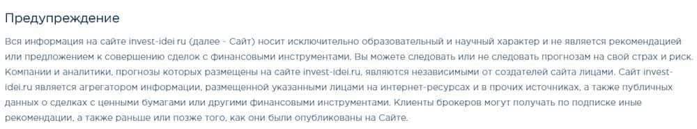 Авантюристы Invest-Idei Ru предупреждают - информация на сайте не является советами или призывом совершать какие-то сделки. Это просто писанина, ведущая к сливу депозитов.