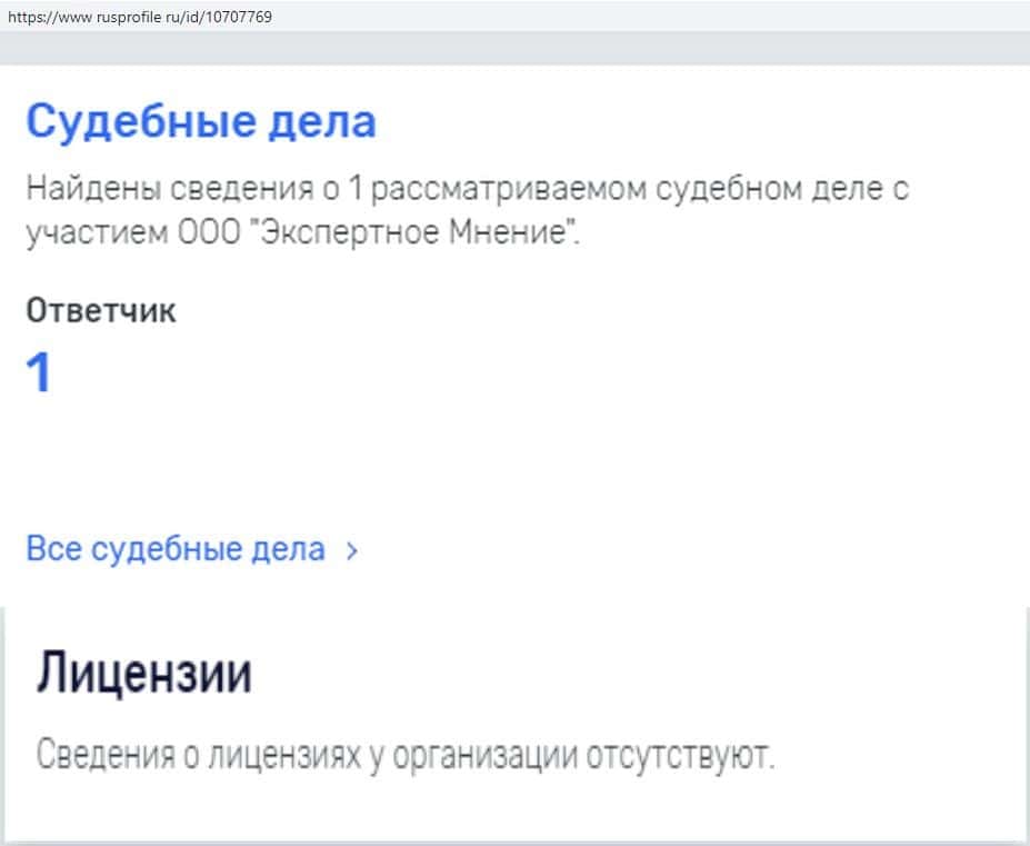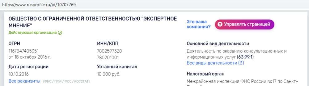 Хотя мошенники Инвест Идеи и повторяют, что они просто агрегатор, и договор публичной оферты заключается от имени сайта, прикрытие у них есть - некое ООО Экспертное мнение.