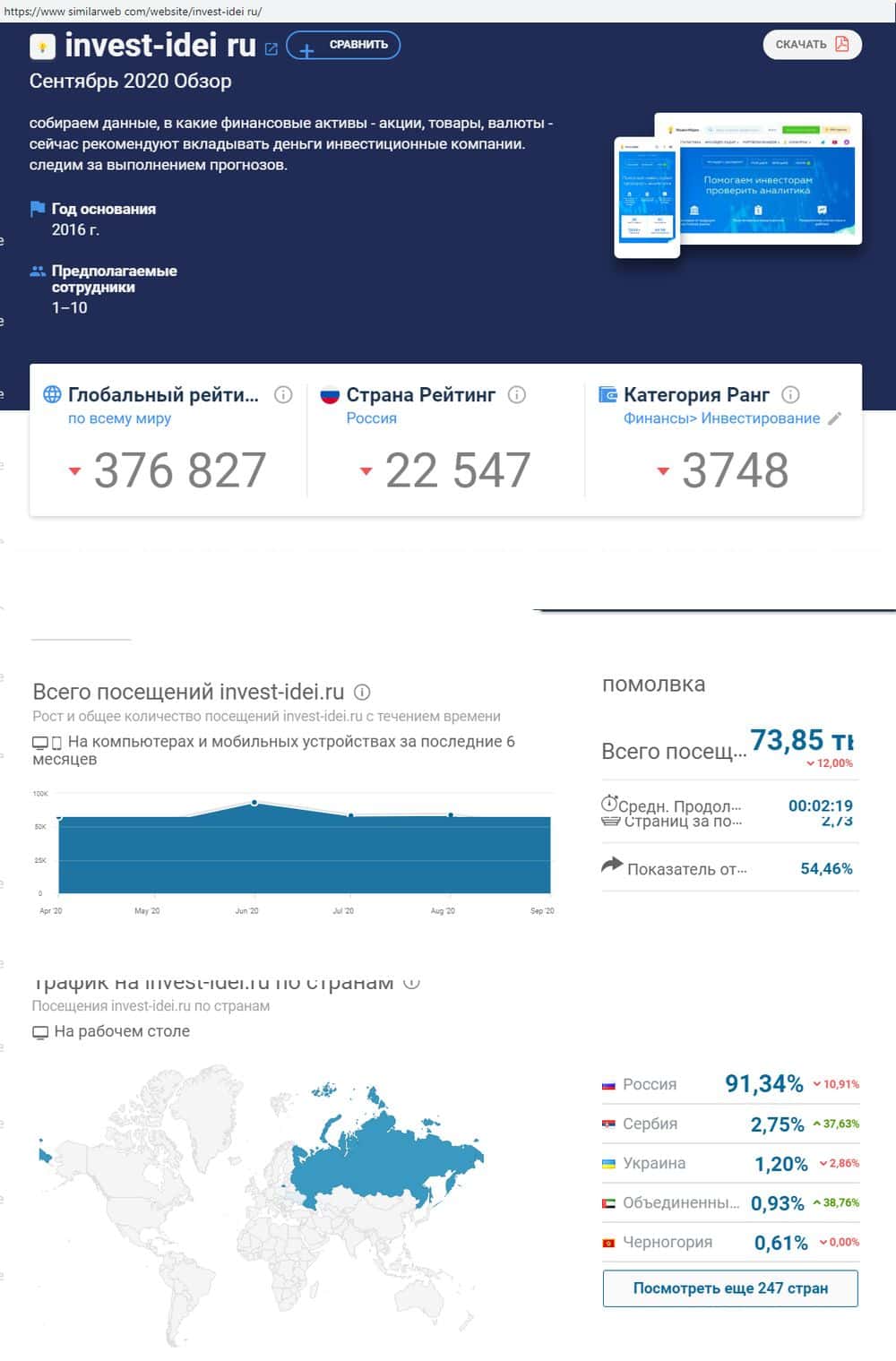 Согласно данным веб-ресурса симиларвеб ком, жулики Инвест Идеи в основном кидают трейдеров-новичков из России, в меньшей степень работают в Сербии, Украина и Черногории.