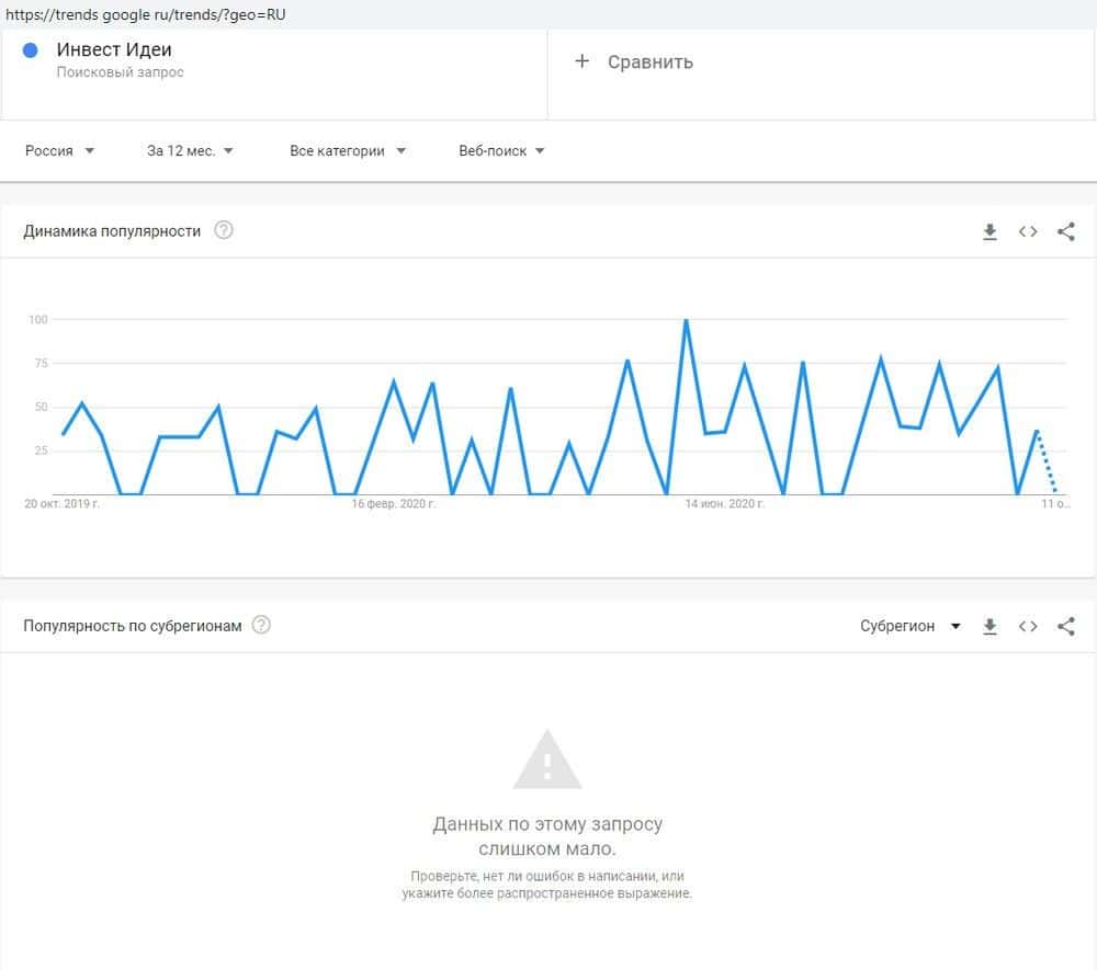 Пользователи поисковой системы Гугл тоже обращались по запросу "Инвест Идеи", и снова это связано в основном с удачным названием, которое трейдеры-новички часто ищут в сети.