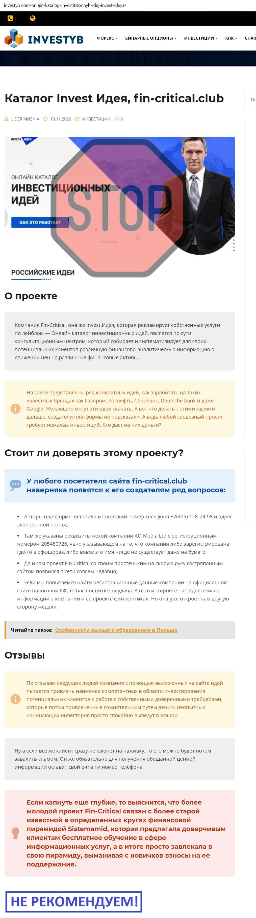 Обзорные статьи, найденные в интернете о жуликах Инвест Идея