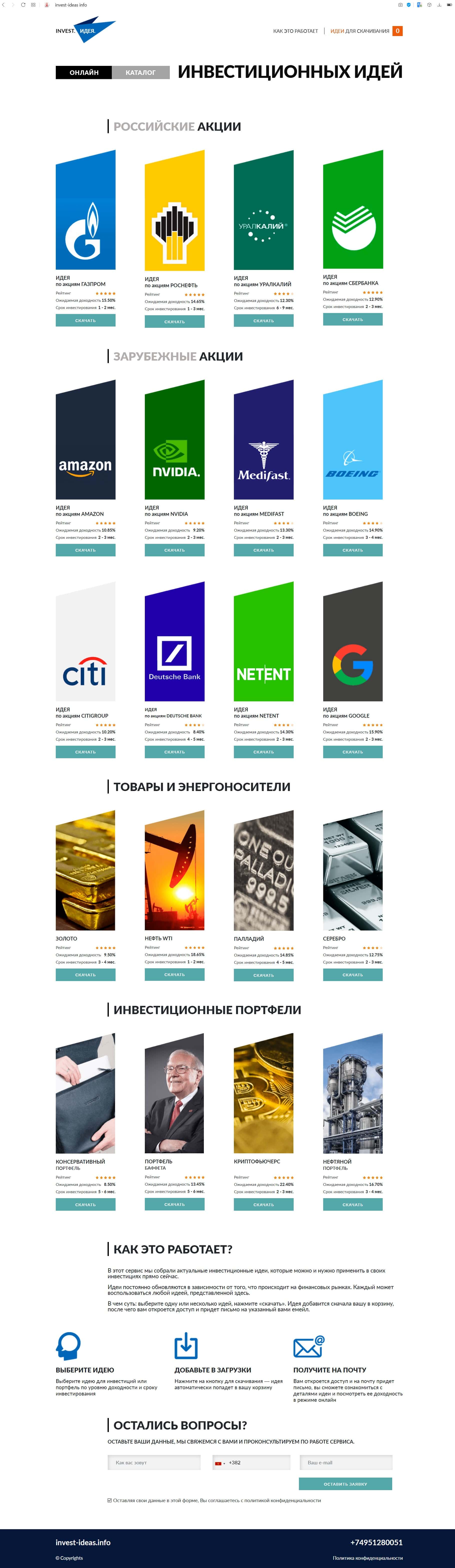 Также на сайте Инвест Идея можно увидеть форму обратной связи, с помощью которой собирают личные данные клиента, чтобы звонить ему и писать на почту.