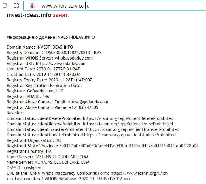 - Кому принадлежит доменное имя сайта Invest-Ideas Info?