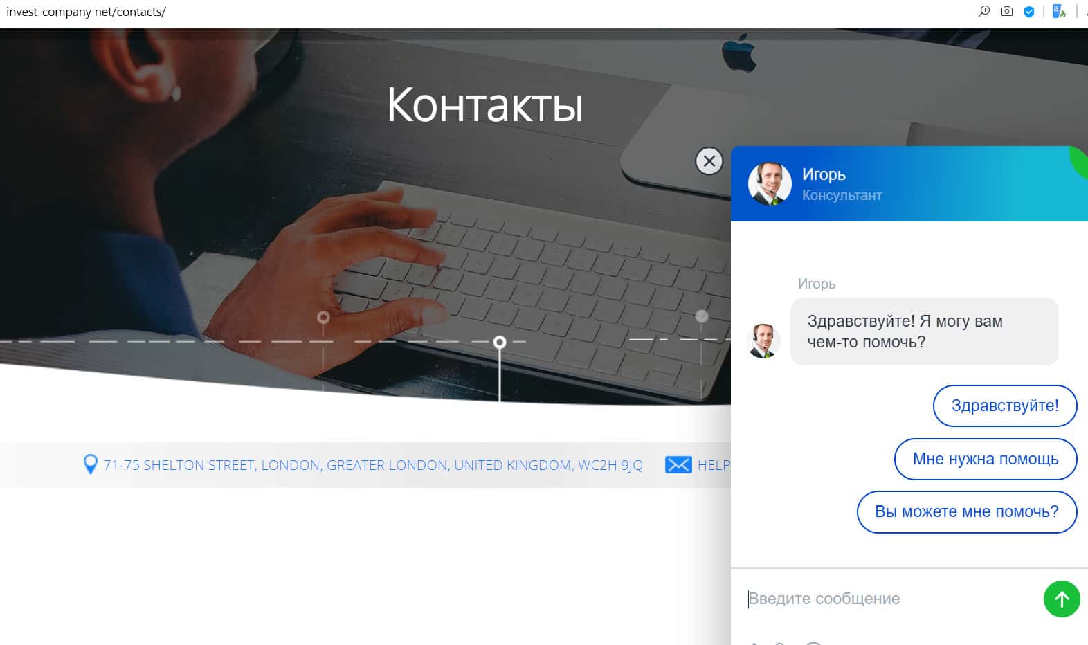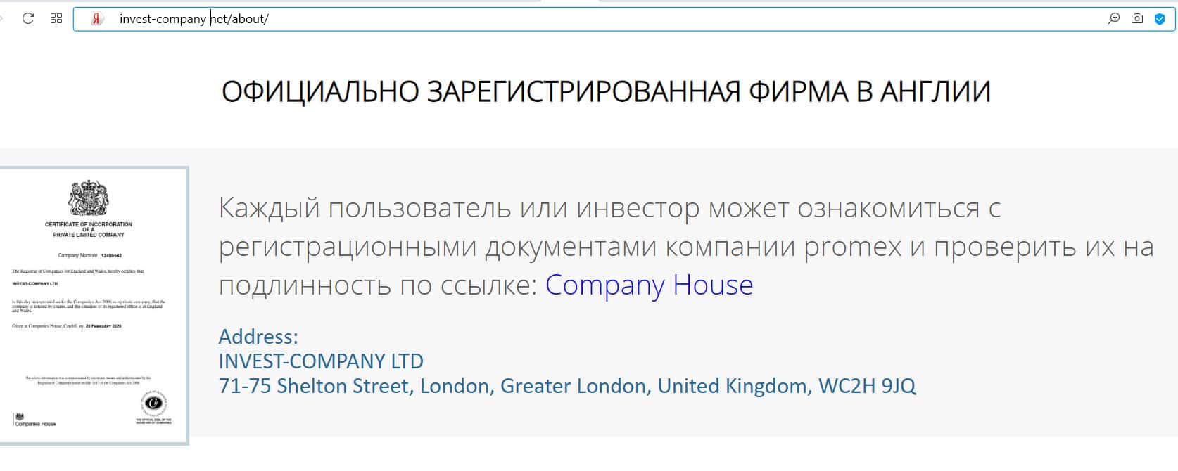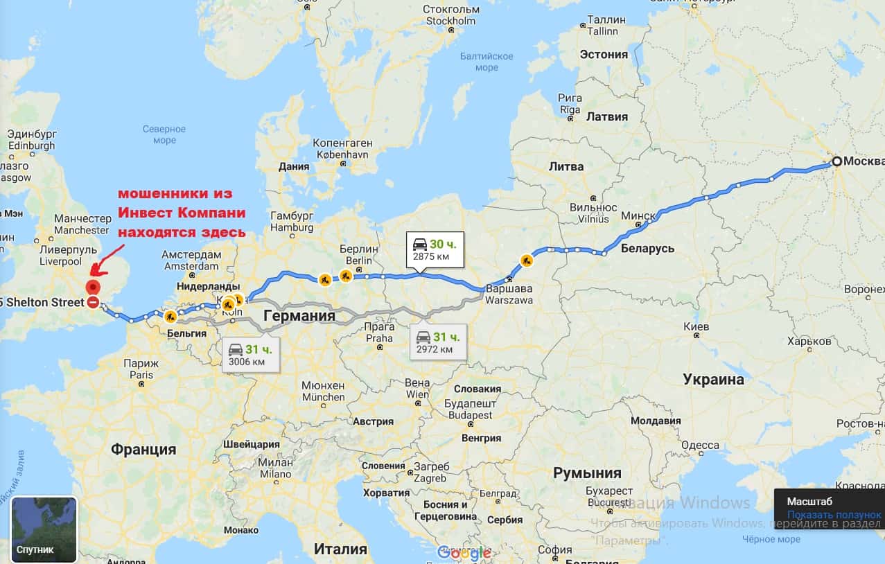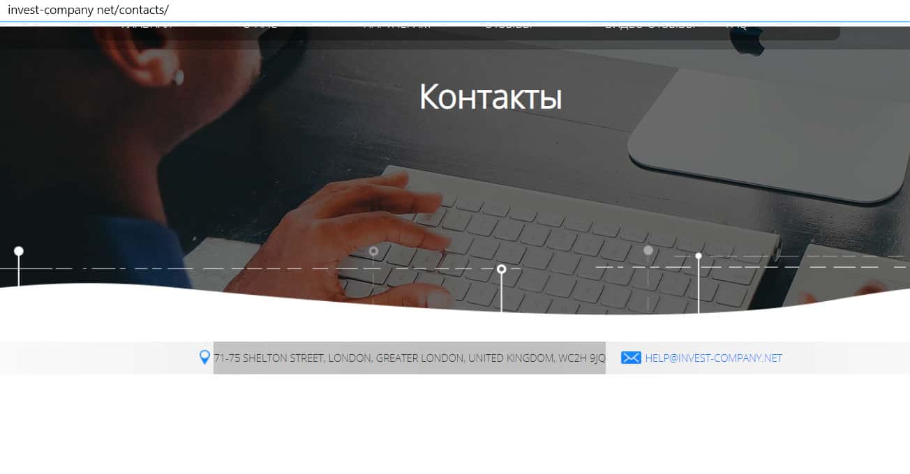 Мошенническая контора Инвест Компани находится в Лондоне, судя по их информации на сайте. Адрес скорее всего, фейковый, такой же, как и весь их липовый сайтик.