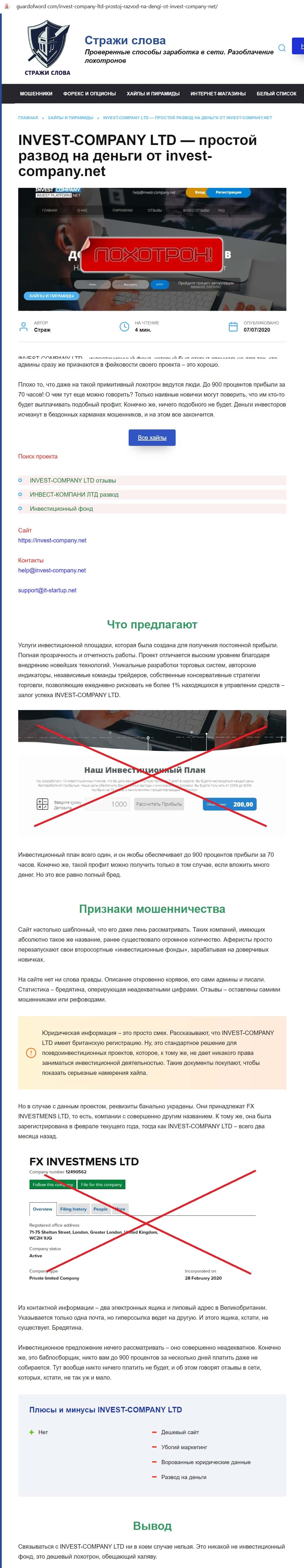 Сайт Гвардофворд пишет в своем обзоре, что контора Инвест Компани - никакой не инвестиционный проект, о самый обычный развод. Не надо связываться с лохотронщиками.
