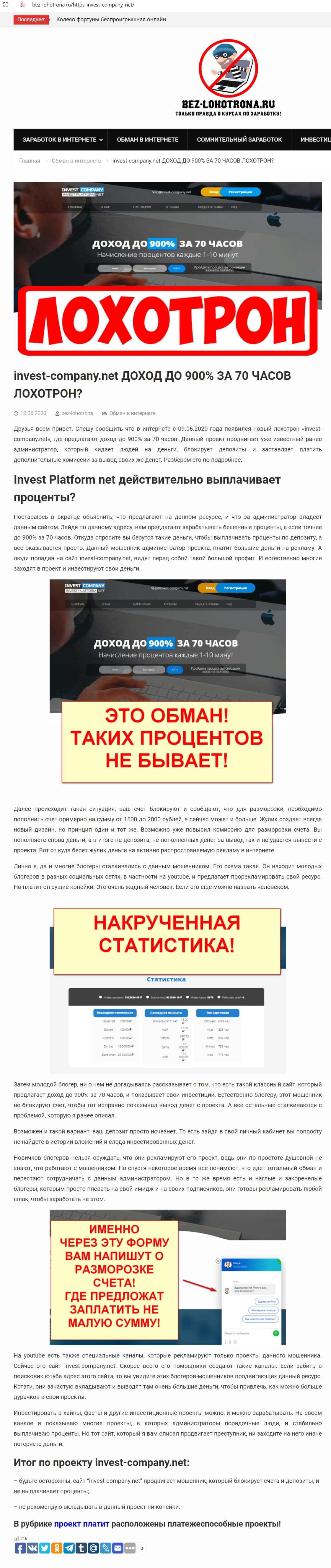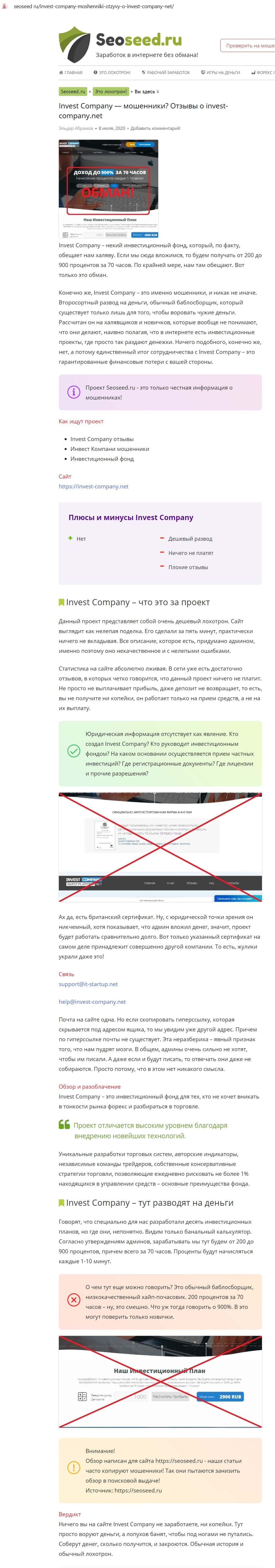 Обзорные статьи с сайтов, нашедшиеся в интернете, о лохотроне Invest-Company Net