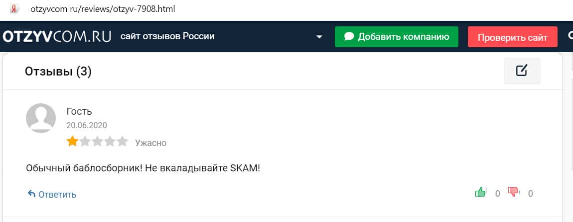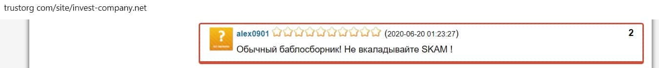 Другой отзыв на этом же сайте, Трасторг, говорит о том, что люди считают данную контору баблосборником. Автор отзыва предупреждает, что проект скам.