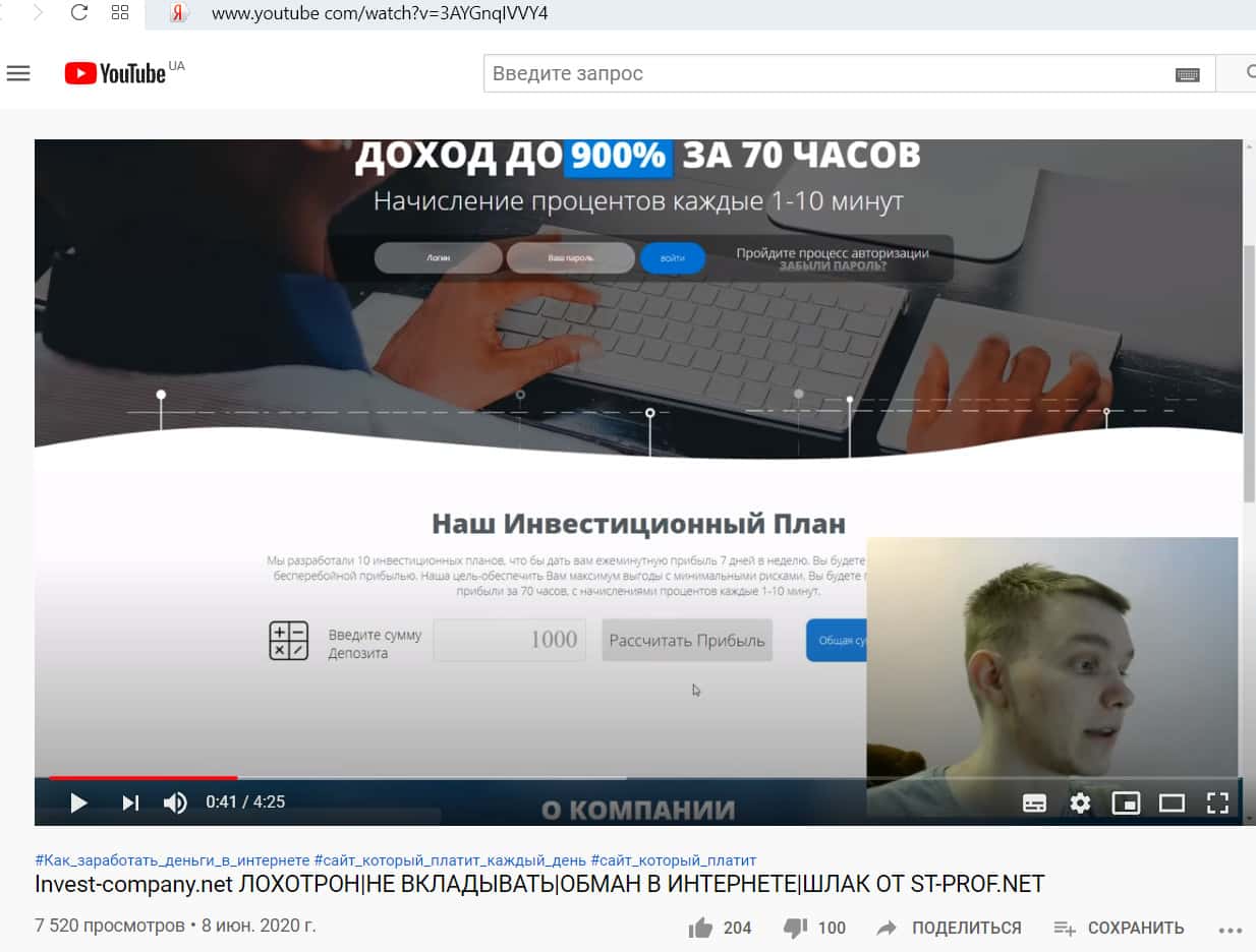 Отзывы с канала Ютуб о шулерской конторе Инвест Компани
