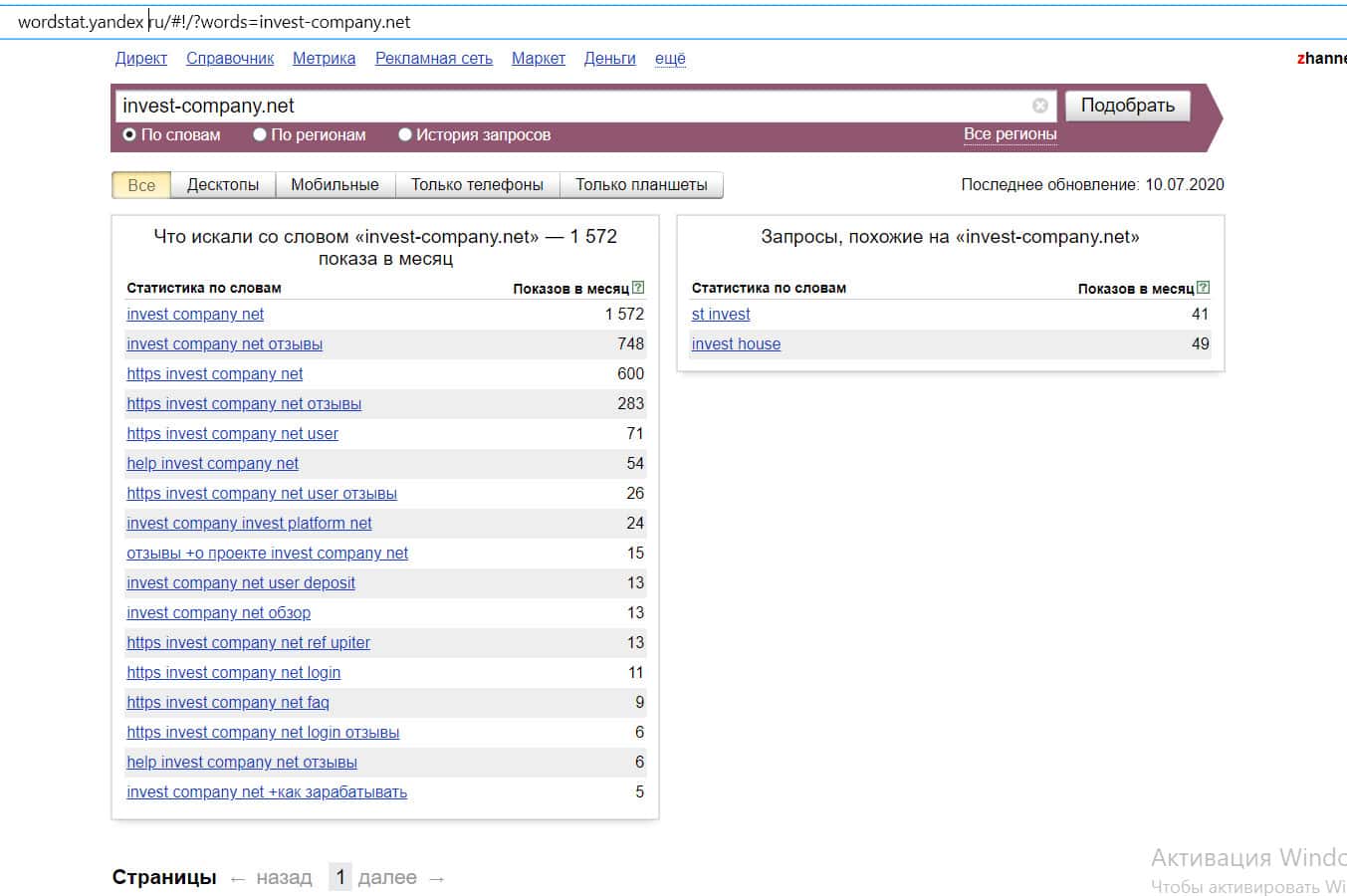 По запросам пользователей в поисковой системе Яндекс, название бренда в виде домена с точкой "invest-company.net" показало 1572 запроса за месяц.
