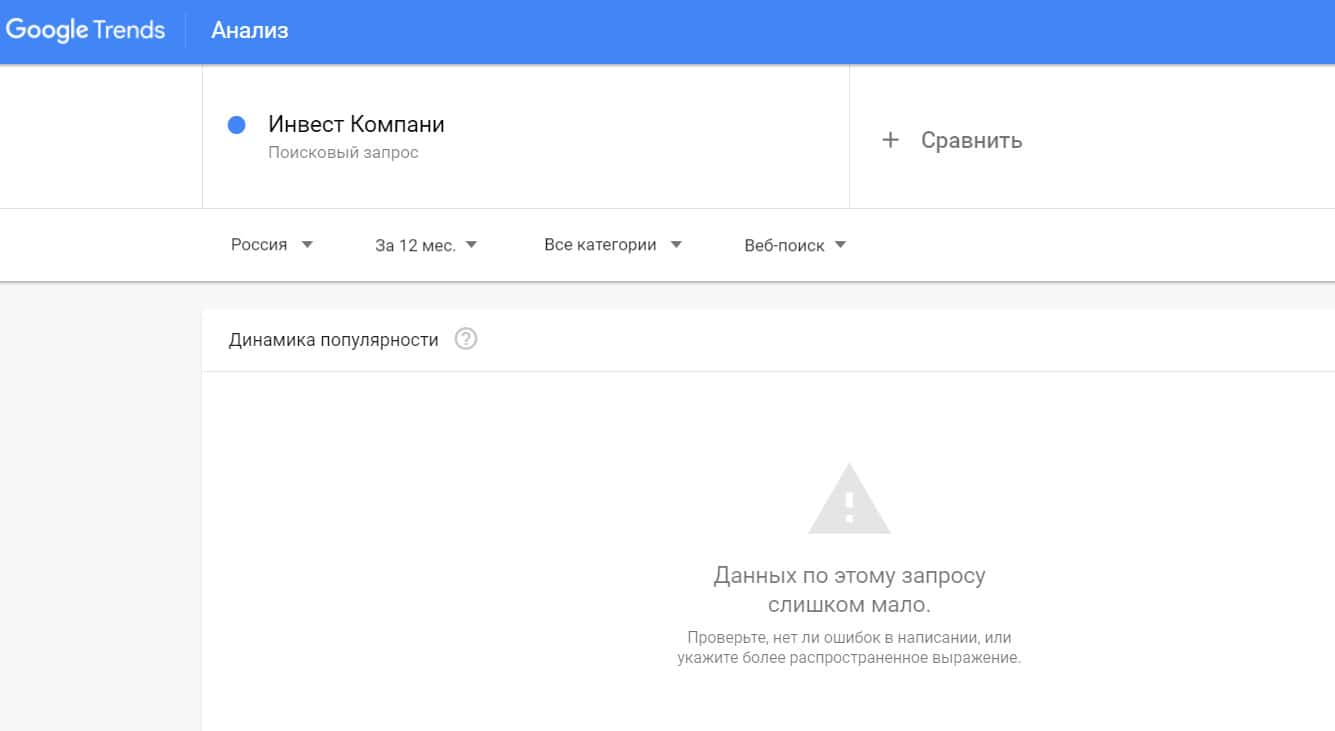 - Информация о запросах по конторе Инвест Компани в Гугл Тренд