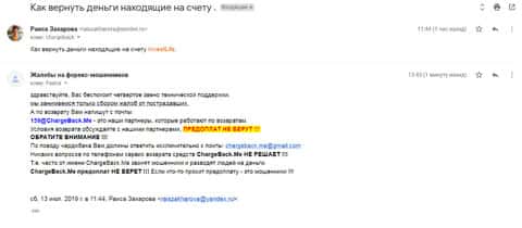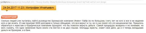 Далее представляю вашему комментарий от одного из попавшихся на разводняк клиентов компании Инвест Лайф. Все таки воспользовавшись юридической помощью жертва мошенничества смогла вернуть свои 9 тысяч долларов. И скорее-всего в этот период кухня немного беспокоилась о своей репутации.