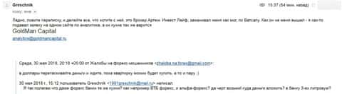 Работа службы клиентской поддержки мошеннической организации Invest Life