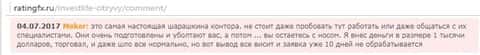 Ниж размещен отзыв, где рассмотрена ситуация, когда клиента по имени Макар кидает брокер Инвест Лайф как минимум на одну тысячу американских долларов. Изначально сие жулики всеми возможными способами пытаются втянуть любителя внебиржевых игр в кухню, а уже когда дело доходит до вывода клиентских средств, вот тогда то, шарлатаны включают полный игнор.