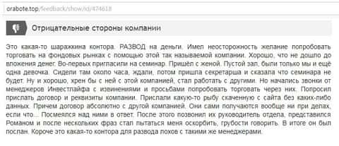 Здесь нам ведают о том, как в дилинговом центре разводят клиентов на деньги с помощью услуги по доверительному управлению. Ольга заявляет, что управляющий трейдер компании Инвест Лайф лишил ее 15 тысяч американских долларов, так как с ПАММ-счета все вложения были слиты.