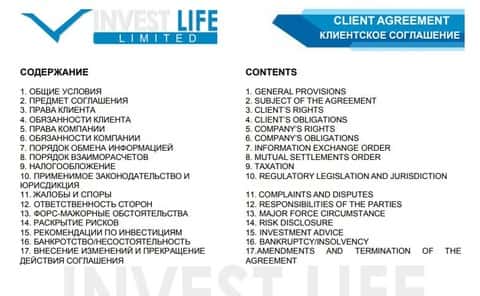 - Что собой представляет клиентское соглашение брокерской конторы Invest Life?