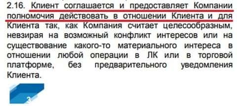Дальнейшее правило в соглашении между брокерской компанией Инвест Лайф и ее клиентом, создает благоприятные условия для того, чтобы данный forex-лохотрон мог торговать против самого клиента.